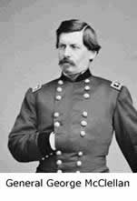 Following the fall of Fort Henry, Grant sent Foote’s gunboats down the Tennessee, up the Ohio and thence up the Cumberland River toward Fort Donelson. Meanwhile he marched his army overland and surrounded the fort. The Confederate commanders attempted to break out but were unable to penetrate Grant’s lines. Two Confederate generals departed through Union lines under a white flag, leaving General Simon Bolivar Buckner in charge. Although Fort Donelson artillery drove off Flag Officer Foote’s gunboats, Grant had a firm hold on the fort. When Buckner asked Grant for terms, Grant responded that no terms except “unconditional surrender” could be accepted. He added, “I propose to move immediately upon your works.” Thereafter Gen. Ulysses S. Grant became known as “unconditional surrender” Grant. Buckner, an old friend of Grant from prewar days, told the victor, “Sam, if I'd been in charge the whole time, you never would have gotten away with it.” Grant supposedly responded, “Buckner, if you had been in charge, I never would have tried.” Whether true or not, the anecdote illustrates a factor that played itself out numerous times in the Civil War; often the opposing commanders knew each other. Many had served together in the Mexican war and elsewhere, and they often gauged their tactics according to their knowledge of what their opponents would be likely to do. Shiloh. The victory at Fort Donelson was a major success, and the Union celebrated its first hero. Combined with the Union victories at Middle Creek, Kentucky, under Colonel (and future president) James Garfield and General George Thomas’s victory at Mill Springs, Kentucky, the Confederates were driven out of Kentucky, and Union forces controlled the Tennessee and Cumberland Rivers as well all the railroads in western Tennessee. General Grant had established himself as an effective commander and continued moving further into Tennessee. Grant moved his Army up the Tennessee River to a point known as Pittsburg Landing, about 15 miles northwest of the Alabama, Mississippi, Tennessee intersection, where he was waiting to combine forces with General Don Carlos Buell. Although the area was lightly settled, a church in the vicinity named Shiloh gave its name to the battle, which was fought on April 6 and 7, 1862. General Albert Sidney Johnston, reputed to be the finest officer in the Confederate army, decided to attack before Grant could be reinforced, and he launched an assault early on April 6. Not realizing that the Confederates were so close, Grant had neglected to fortify his position and instead was drilling his troops. Grant was not even on the scene when his troops were caught off guard by Johnston’s Confederates, but although they were hard-pressed, the Union Army managed to hang on during a long day of fierce fighting, taking a stand at a sunken road that became known as the “hornet’s nest.” Johnston was mortally wounded during the first day’s fighting, and command was turned over to General P.G.T. Beauregard. During the night General Buell’s troops arrived and crossed the Tennessee River to join Grant’s men. Early on the morning of April 7, the fighting resumed, and Beauregard, having suffered heavy casualties, retired from the field and took his army back to Corinth, Mississippi. A pursuit led by General William T. Sherman on April 8 was unsuccessful, but the victory had been substantial. Casualties at Shiloh numbered over 23,000, with the Union having suffered more losses. The Confederates lost a larger percentage of their troops, however. The total casualties exceeded all of America's previous wars put together, yet it was by no means the costliest battle of the Civil War. Despite his successes, rumors about Grant’s former drinking problems and other political machinations brought criticism of him in Washington. President Lincoln said, however, “I can't spare this man: He fights.” Part of the reason for President Lincoln’s response to the criticism of Grant was that his general in the East, George B. McClellan, was moving so slowly that even his impressive reviews had begun to lose their luster. The administration and Congress wanted victories, not parades. McClellan initially planned a direct assault on Richmond, but when he advanced across the Potomac, he discovered that the Confederates had withdrawn southward, so he conceived a new battle plan. (After the Confederates departed, it was discovered that much of the “artillery” trained on Washington was actually logs painted black; the press dubbed them “Quaker cannon.”) He decided to take the entire Army of the Potomac down the river for which it was named and land it on the peninsula between the York and James Rivers. As a superb organizer and logistician, McClellan moved his army efficiently; the problems began when it was time to fight. The Monitor and the Merrimack. While McClellan was preparing his campaign during early March, a famous naval battle took place in Hampton Roads, Virginia. The Confederate Navy had captured the former U.S.S. Merrimack, rebuilt it with heavy iron plating and renamed it At the outbreak of the war the Union Navy had been nothing but a motley collection of ships, few of them formidable. But the U.S. government purchased ships of all kinds for use in the blockade, and began a building program in August, 1861. Within a year the number of ships sailing in and out of Southern ports had been substantially reduced, and as Union forces captured various ports and islands along the Southern coast, the blockade gradually grew tighter. Early in the war, the odds of successfully running the blockade were approximately nine in ten; as the Union blockade tightened, the chances of a blockade runner getting through dropped to about one in three. McClellan’s Peninsular Campaign. After months of preparation, General McClellan began his Peninsula Campaign on March 17, moving the Army of the Potomac by ship to a